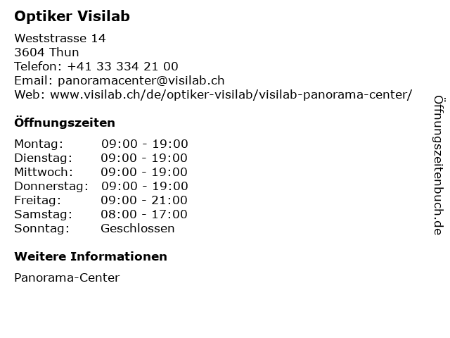 | Öffnungszeiten Optiker Visilab in Thun anzeigen | |