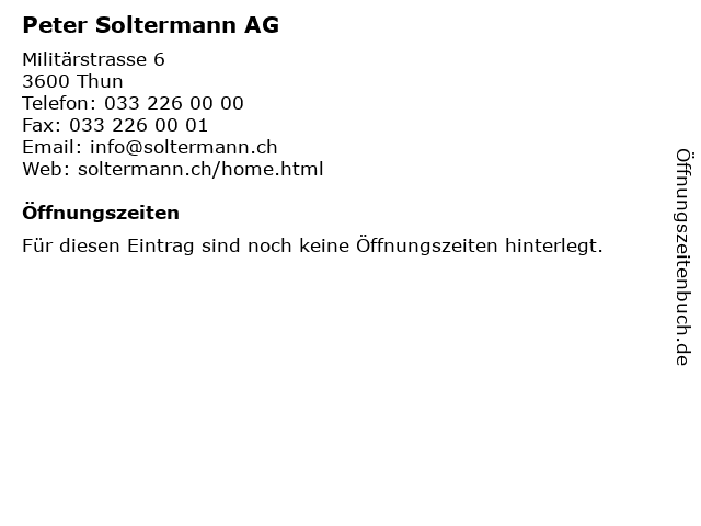 | Öffnungszeiten Peter Soltermann AG in Thun anzeigen | |