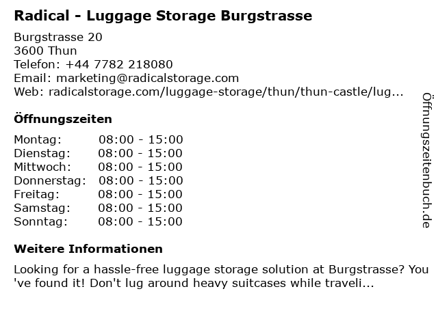 Branchen & Suchbegriffe zu Radical - Luggage Storage Burgstrasse:burgstrasse, luggage, luggage storage, luggage storage near me, radical, storage |