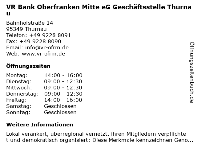 Branchen & Suchbegriffe zu VR Bank Oberfranken Mitte eG Geschäftsstelle Thurnau:altersvorsorge, bank, baufinanzierung, eg, geldanlage, geldautomat, geschäftsstelle, girokonto, immobilien, kredit, kreditkarte, mitte, oberfranken, thurnau, versicherung, vr |