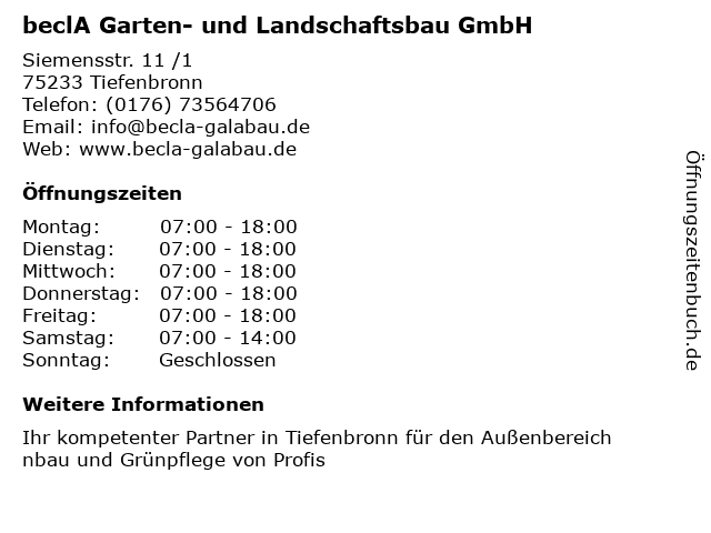 1 Sarkis Mahseredjian Garten- und Landschaftsbau (Entfernung: 1,01 km) Holbeinstr. 3, 75233 Tiefenbronn 2 Garten-Landschaftsbau & Pflege Spielplatzbau Brantner Roland (Entfernung: 2,48 km) Kirchstr. 16, 71292 Friolzheim 3 G. Baumschule u. C. Ulrich Garten- und Landschaftsbau (Entfernung: 3,80 km) Gottlob-Armbrust-Str. 16, 71296 Heimsheim 6 |