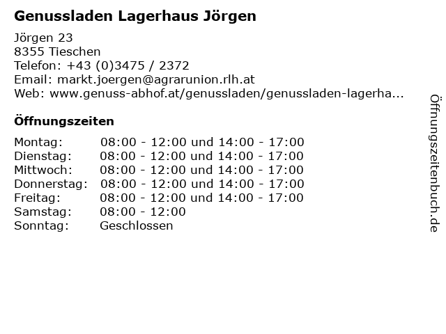 1 Agrarunion Südost eGen Lagerhaus & Co. KG - Agrar, Bau & Garten, Brennstoffe und Wein/Obstbau (Entfernung: 0,10 km) Jörgen 23, 8355 Tieschen 2 Agrarunion Südost eGen Lagerhaus & Co. KG - Werkstätte Landmaschinen (Entfernung: 0,10 km) Jörgen 23, 8355 Tieschen 3 Agrarunion Südost eGen Lagerhaus & Co. KG - Ersatzteile (Entfernung: 0,10 km) Jörgen 23, 8355 Tieschen 5 Agrarunion Südost Lagerhaus - Deutsch Goritz (Entfernung: 7,68 km) Deutsch Goritz 91, 8483 Deutsch Goritz 6 |