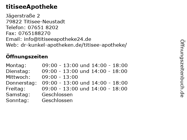 | Adresse titiseeApotheke in Titisee-Neustadt anzeigen |