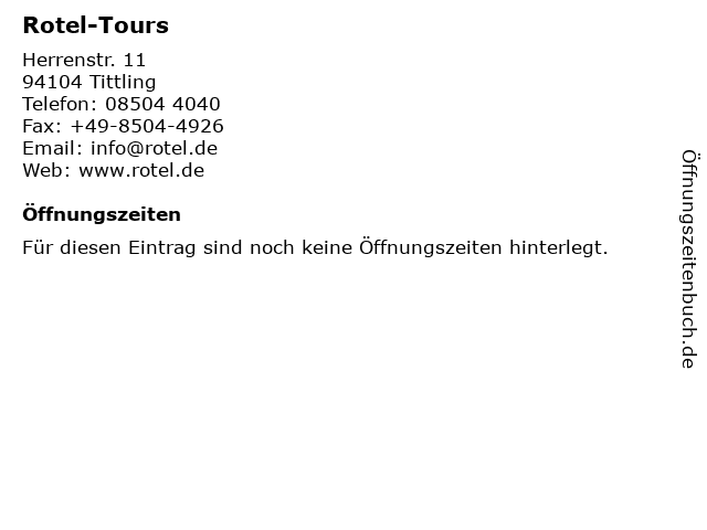 | Öffnungszeiten Rotel-Tours in Tittling anzeigen | |