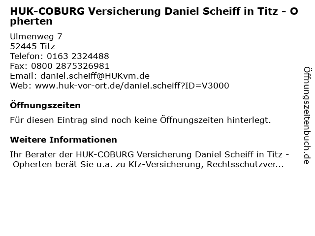 | HUK-COBURG Versicherung Daniel Scheiff in Titz - Opherten anrufen | |