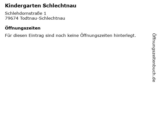 | Öffnungszeiten Kindergarten Schlechtnau in Todtnau-Schlechtnau anzeigen | |
