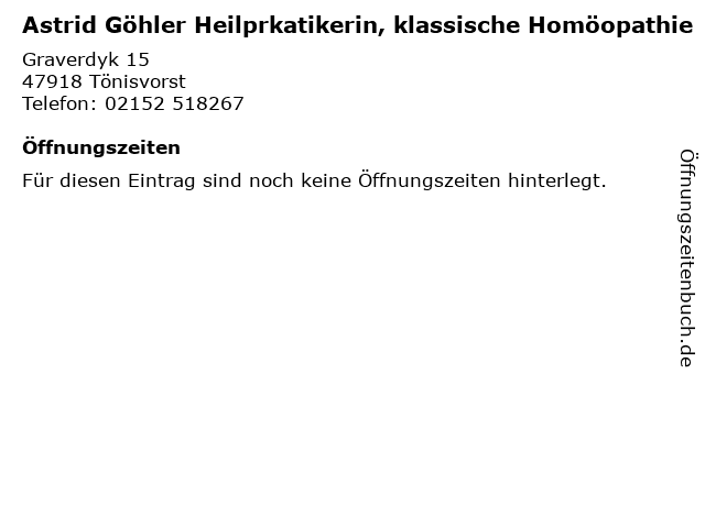 | Astrid Göhler Heilprkatikerin, klassische Homöopathie anrufen | |