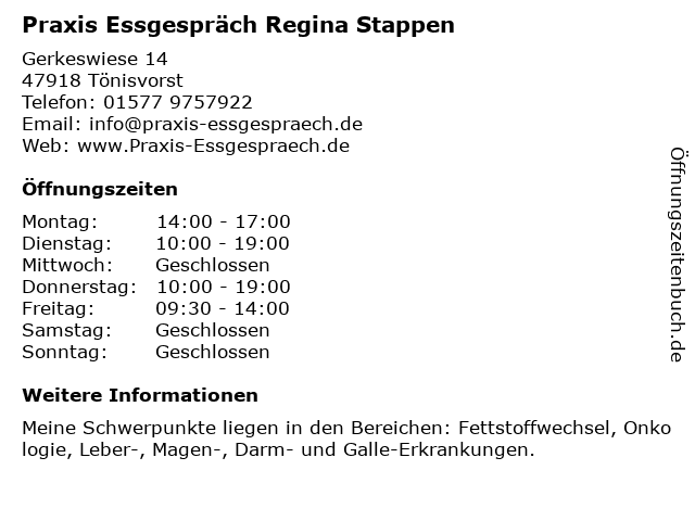 Branchen & Suchbegriffe zu Praxis Essgespräch Regina Stappen:essgespräch, praxis, regina, stappen |