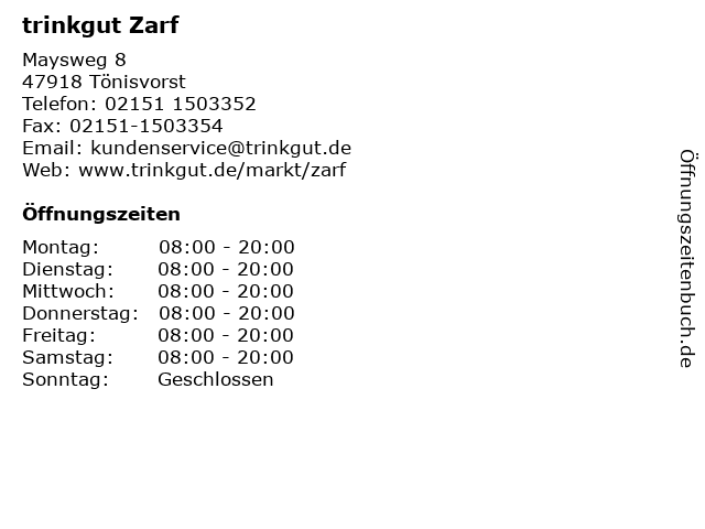 Öffnungszeiten trinkgut Zarf in Tönisvorst anzeigen