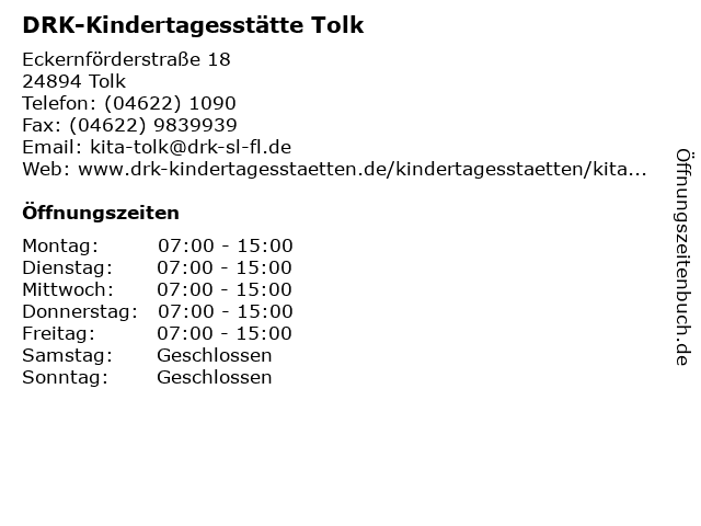 | Öffnungszeiten DRK-Kindertagesstätte Tolk in Tolk anzeigen | |