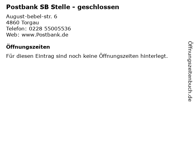 Postbank SB Stelle - geschlossen in Torgau: Telefonnummer, Öffnungszeiten und Adresse