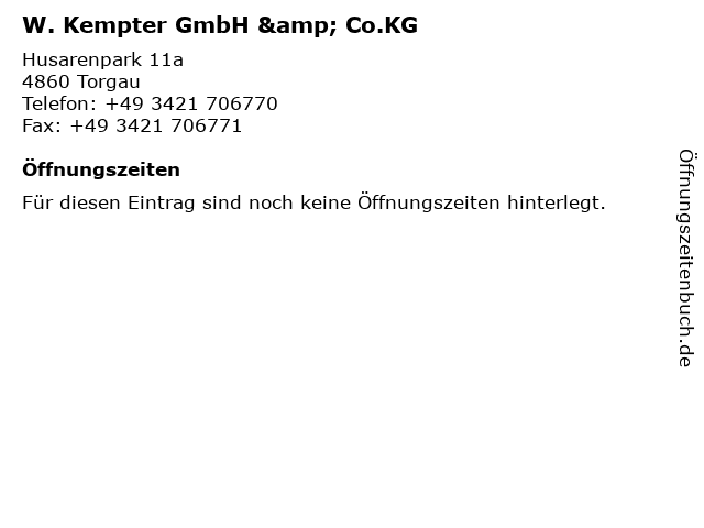 | Öffnungszeiten W. Kempter GmbH & Co.KG in Torgau anzeigen | |