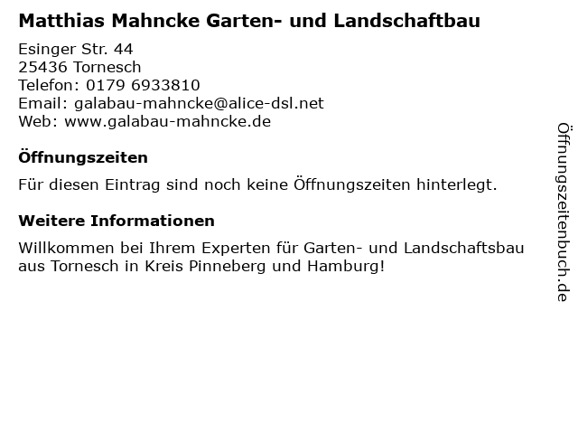 | Matthias Mahncke Garten- und Landschaftbau anrufen | |