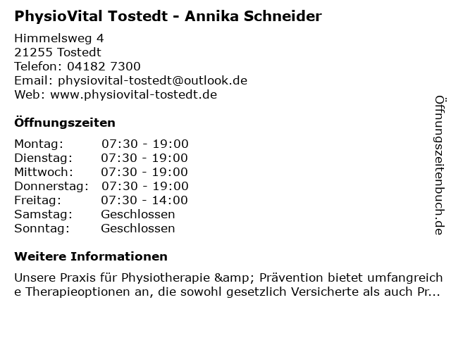 Branchen & Suchbegriffe zu PhysioVital Tostedt - Annika Schneider:annika, physiovital, schneider, tostedt |