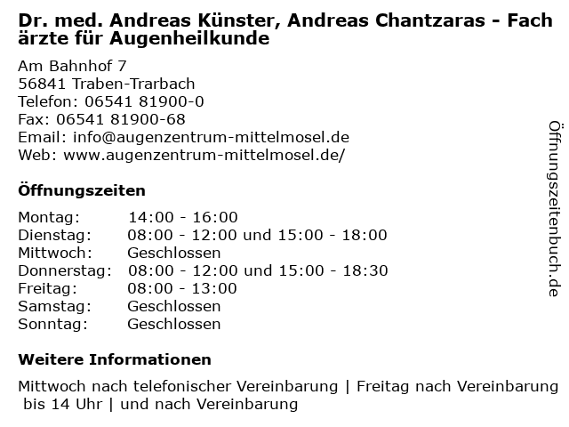 Branchen & Suchbegriffe zu Dr. med. Andreas Künster, Andreas Chantzaras - Fachärzte für Augenheilkunde:andreas, arzt, augenheilkunde, chantzaras, dr., fachärzte, künster, med., sprechzeiten, versorgung, ärzte |