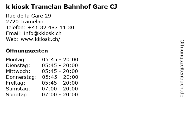 Branchen & Suchbegriffe zu k kiosk Tramelan Bahnhof Gare CJ:bahnhof, cj, gare, kiosk, tabakwaren, tramelan, zeitschriften |