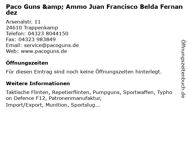 | Paco Guns & Ammo Juan Francisco Belda Fernandez anrufen | |
