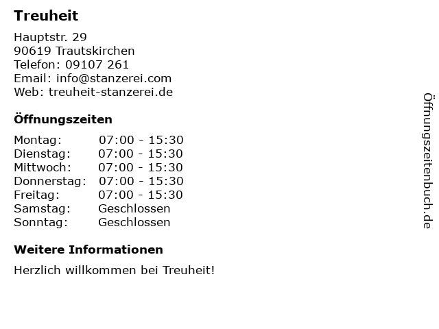 | Öffnungszeiten Treuheit in Trautskirchen anzeigen | |