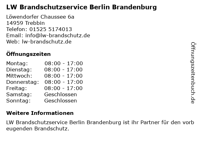 Branchen & Suchbegriffe zu LW Brandschutzservice Berlin Brandenburg:brandschutzservice, lw |