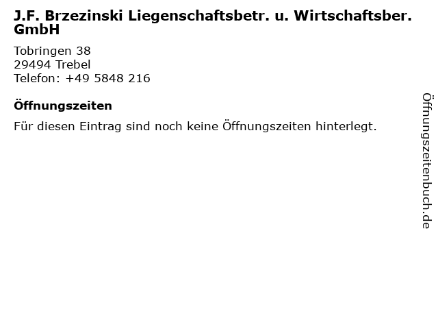 | J.F. Brzezinski Liegenschaftsbetr. u. Wirtschaftsber. GmbH anrufen | |