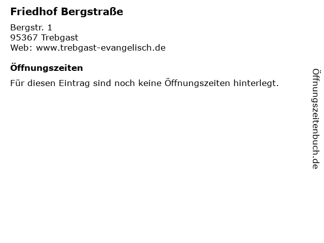 | Öffnungszeiten Friedhof Bergstraße in Trebgast anzeigen | |