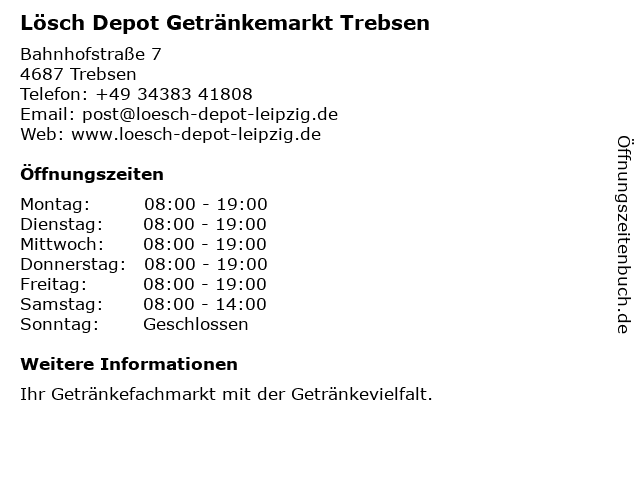 Branchen & Suchbegriffe zu Lösch Depot Getränkemarkt Trebsen:alkohol, alkoholfrei, bier, depot, getränkemarkt, gin, limonade, lösch, mineralwasser, saft, spirituosen, wein |