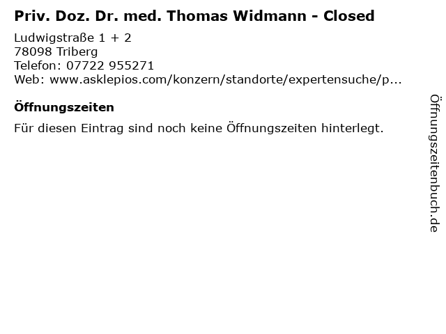 | Priv. Doz. Dr. med. Thomas Widmann - Closed anrufen | |