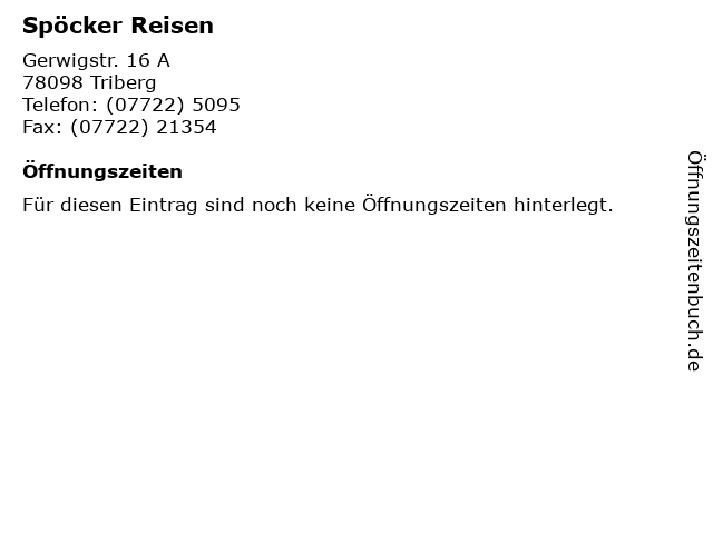 | Öffnungszeiten Spöcker Reisen in Triberg anzeigen | |