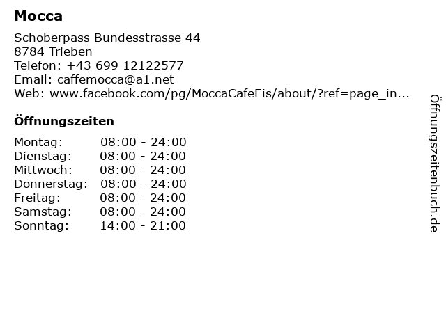 | Öffnungszeiten Mocca in Trieben anzeigen | |