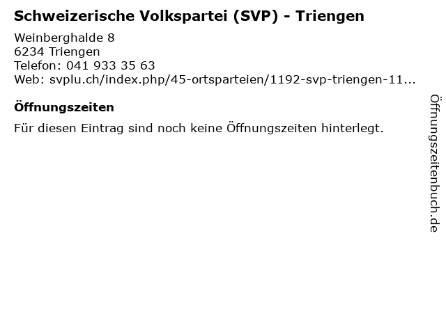 | Schweizerische Volkspartei (SVP) - Triengen anrufen | |