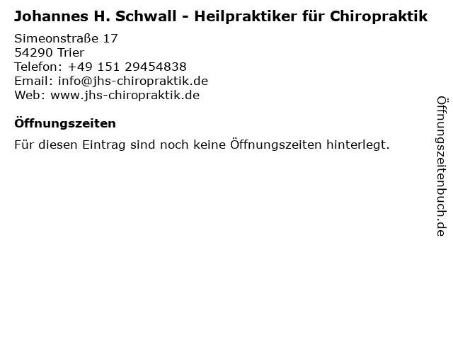 | Johannes H. Schwall - Heilpraktiker für Chiropraktik anrufen | |