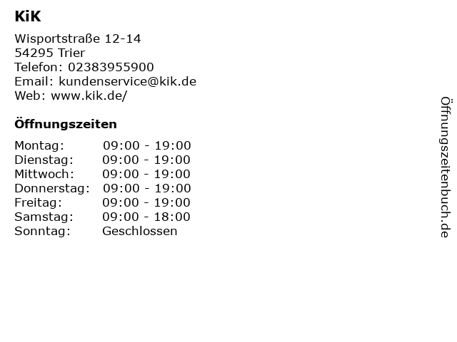 | Öffnungszeiten KiK in Trier anzeigen | |