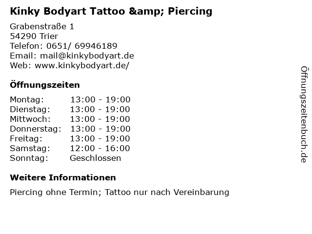 Branchen & Suchbegriffe zu Kinky Bodyart Tattoo & Piercing:bodyart, dienste, ink, kinky, piercing, tattoo, tattoostudio |