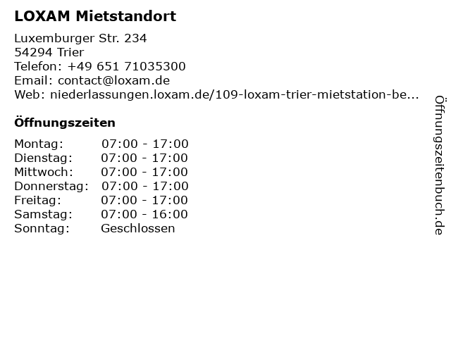 | Öffnungszeiten LOXAM Mietstandort in Trier anzeigen | |