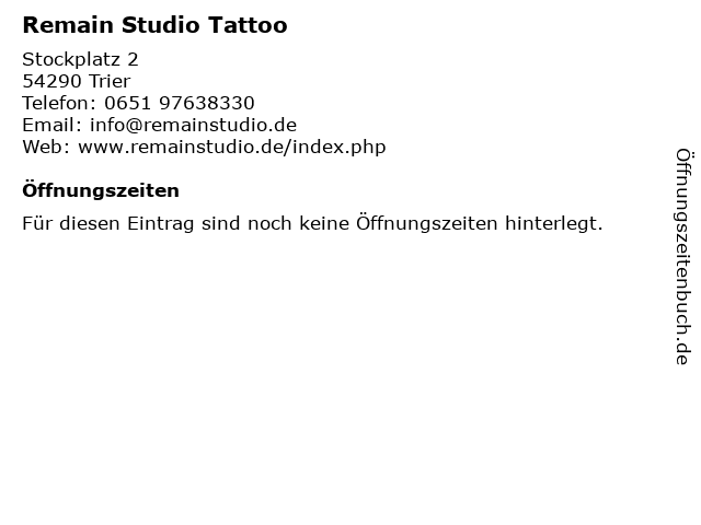 | Öffnungszeiten Remain Studio Tattoo in Trier anzeigen | |