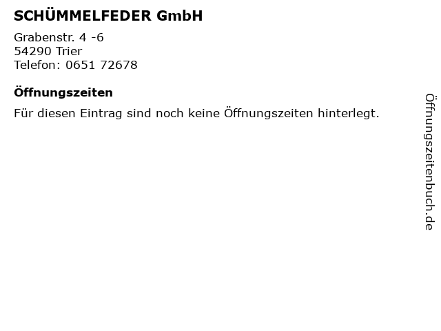 | Öffnungszeiten SCHÜMMELFEDER GmbH in Trier anzeigen | |