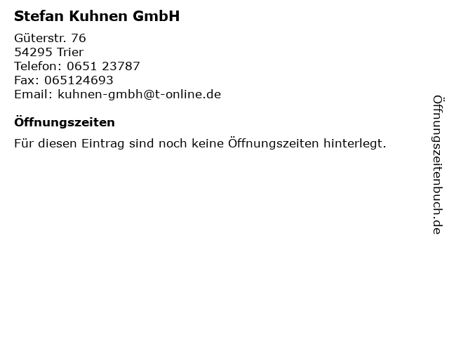 | Öffnungszeiten Stefan Kuhnen GmbH in Trier anzeigen | |