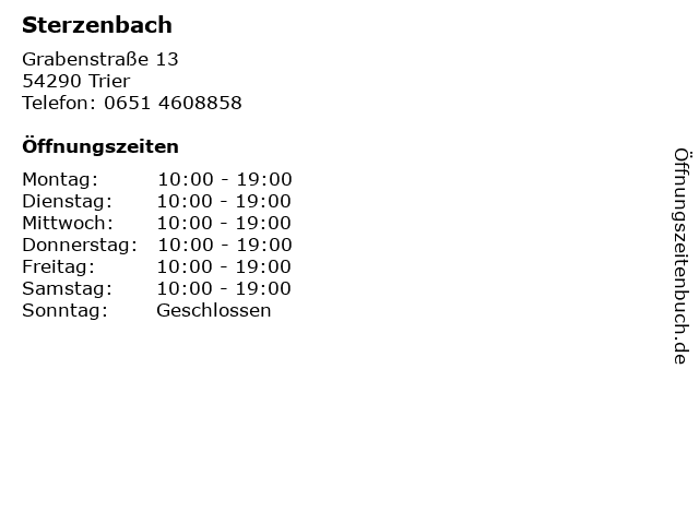 | Öffnungszeiten Sterzenbach in Trier anzeigen | |