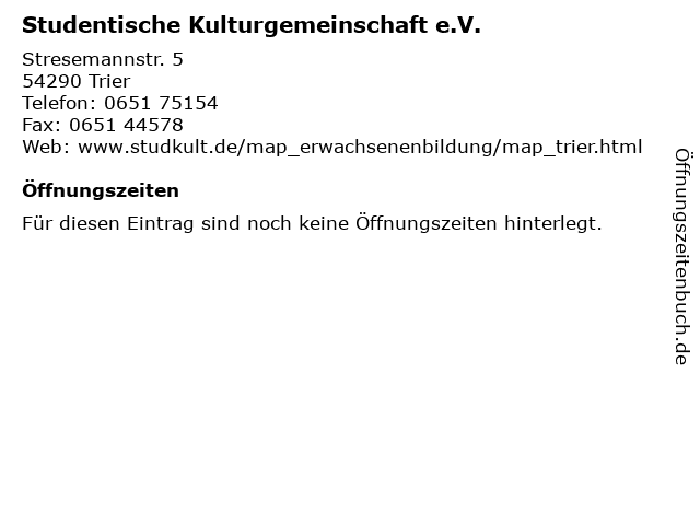 | Studentische Kulturgemeinschaft e.V. anrufen | |