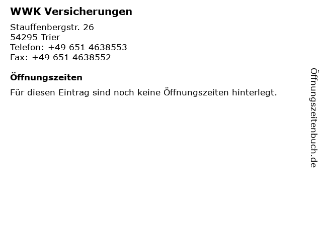 | Öffnungszeiten WWK Versicherungen in Trier anzeigen | |