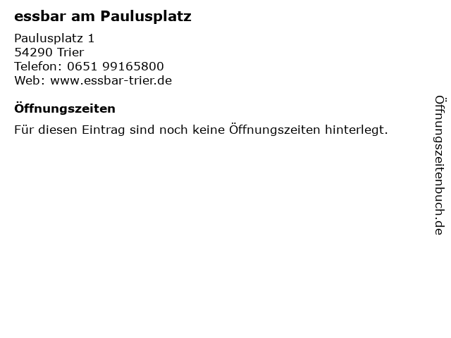 | Öffnungszeiten essbar am Paulusplatz in Trier anzeigen | |