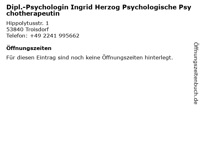 | Dipl.-Psychologin Ingrid Herzog Psychologische Psychotherapeutin anrufen | |