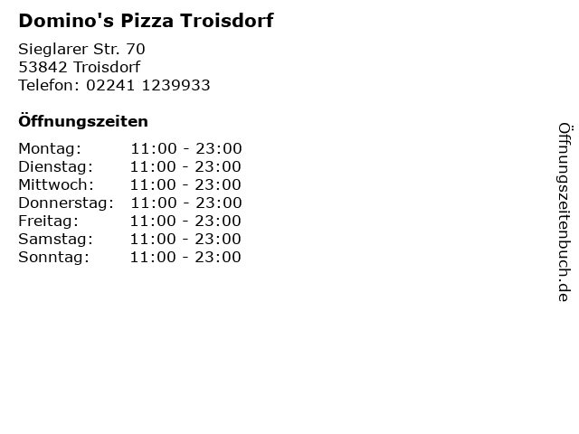 | Öffnungszeiten Domino's Pizza Troisdorf in Troisdorf anzeigen | |