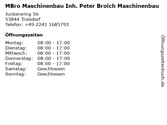 Branchen & Suchbegriffe zu MBro Maschinenbau Inh. Peter Broich Maschinenbau:broich, maschinenbau, mbro, peter |