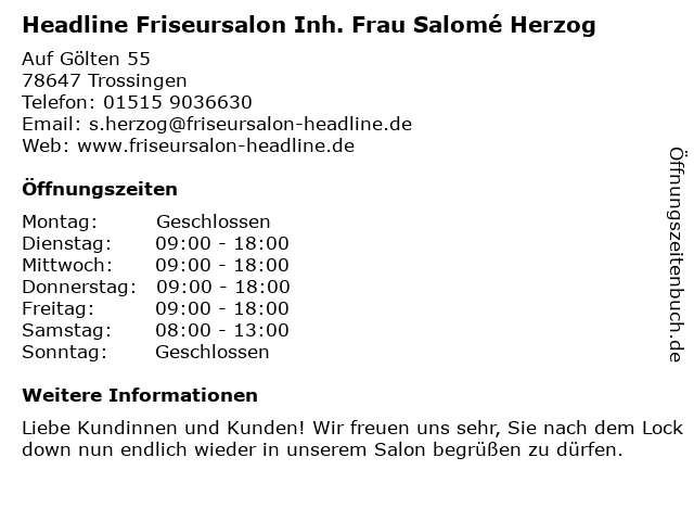 Branchen & Suchbegriffe zu Headline Friseursalon Inh. Frau Salomé Herzog:frau, friseursalon, headline, herzog, salomé |