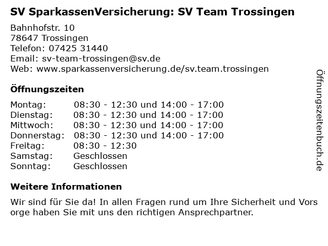 Branchen & Suchbegriffe zu SV SparkassenVersicherung: SV Team Trossingen:sparkassenversicherung, sv, team |
