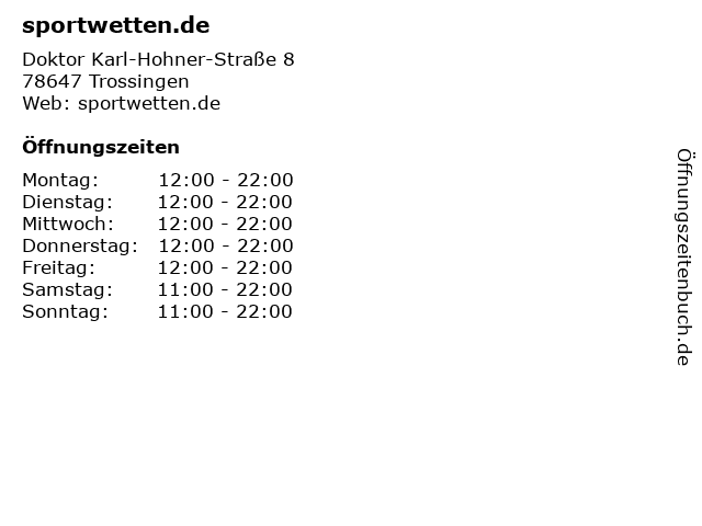 | Öffnungszeiten sportwetten.de in Trossingen anzeigen | |