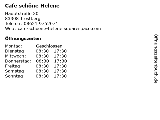 | Öffnungszeiten Cafe schöne Helene in Trostberg anzeigen | |