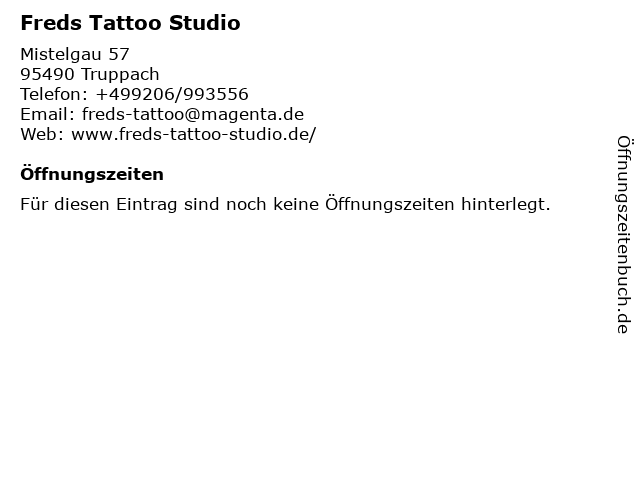 | Öffnungszeiten Freds Tattoo Studio in Truppach anzeigen | |