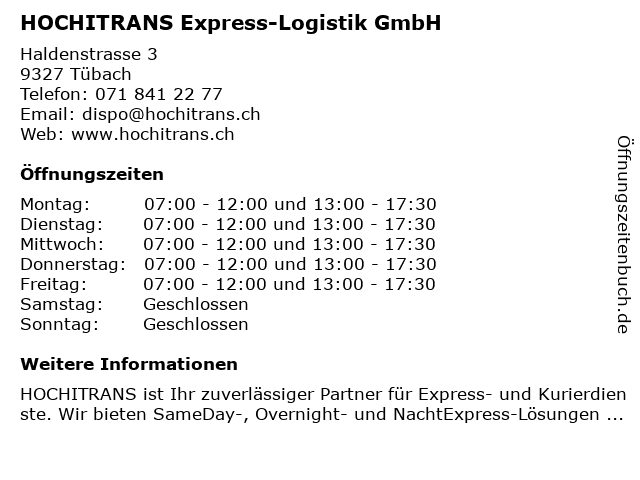 Branchen & Suchbegriffe zu HOCHITRANS Express-Logistik GmbH:express, hochitrans, logistik, logistikdienst, transportunternehmen |